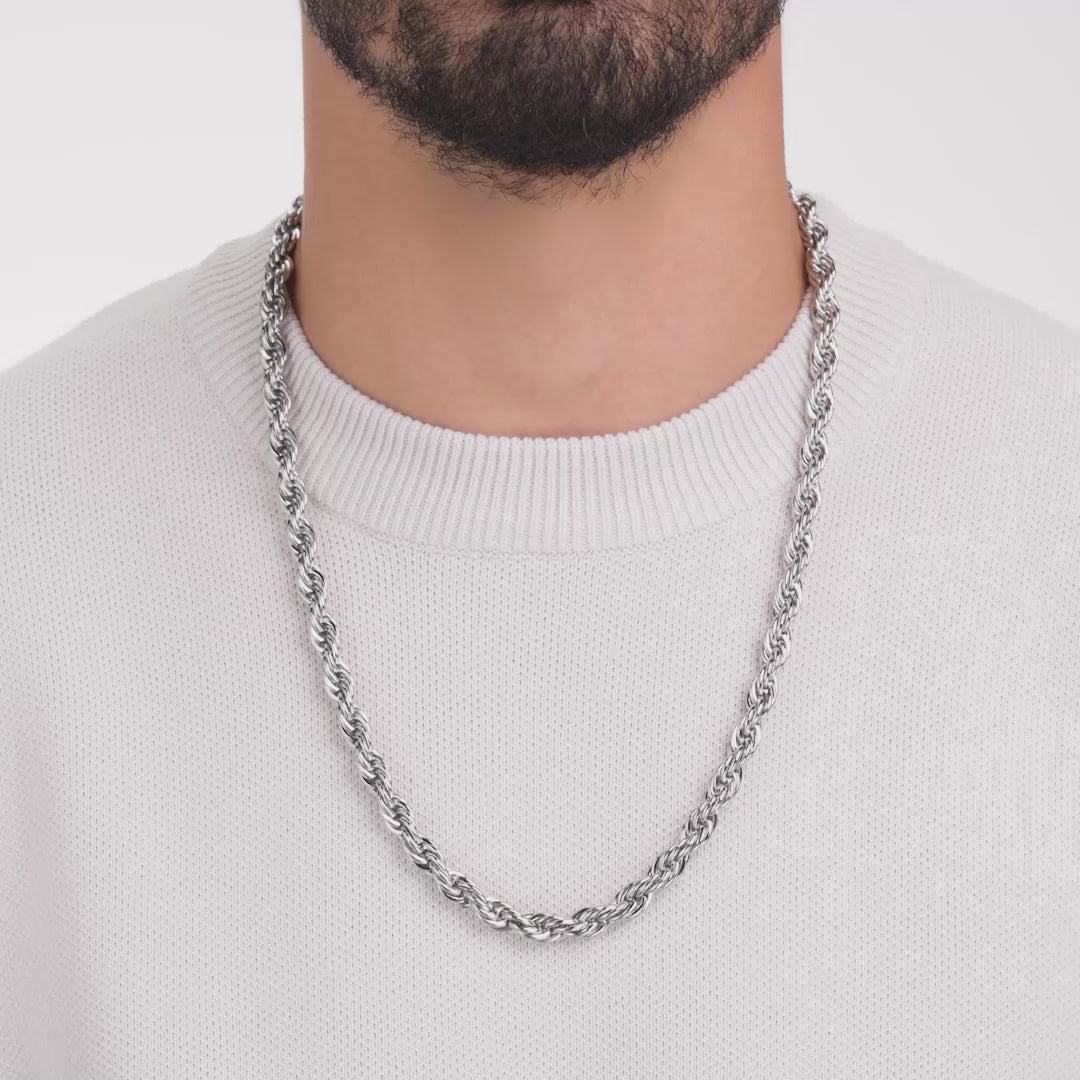 Wenn Sie bereit sind, einen großen Schritt zu machen, dann sollten Sie diese Seilkette aus Edelstahl in Betracht ziehen. Manche Leute denken, dass das gedrehte Aussehen der Seilkette natürlich feminin ist. Mit einer Stärke von 8 Millimetern sind diese Glieder jedoch alles andere als zierlich. Stattdessen handelt es sich um ein kühnes Schmuckstück mit großer Wirkung auf jeden Look. Dies wird durch die glänzende Oberfläche aus Edelstahl noch verstärkt. Da diese Halskette aus einem so strapazierfähigen Material besteht, sehen die Glieder nicht nur gut aus, sondern bleiben auch stabil. Die glänzende Ausführung ist in Gold und Silber mit unterschiedlichen Kettenlängen erhältlich.