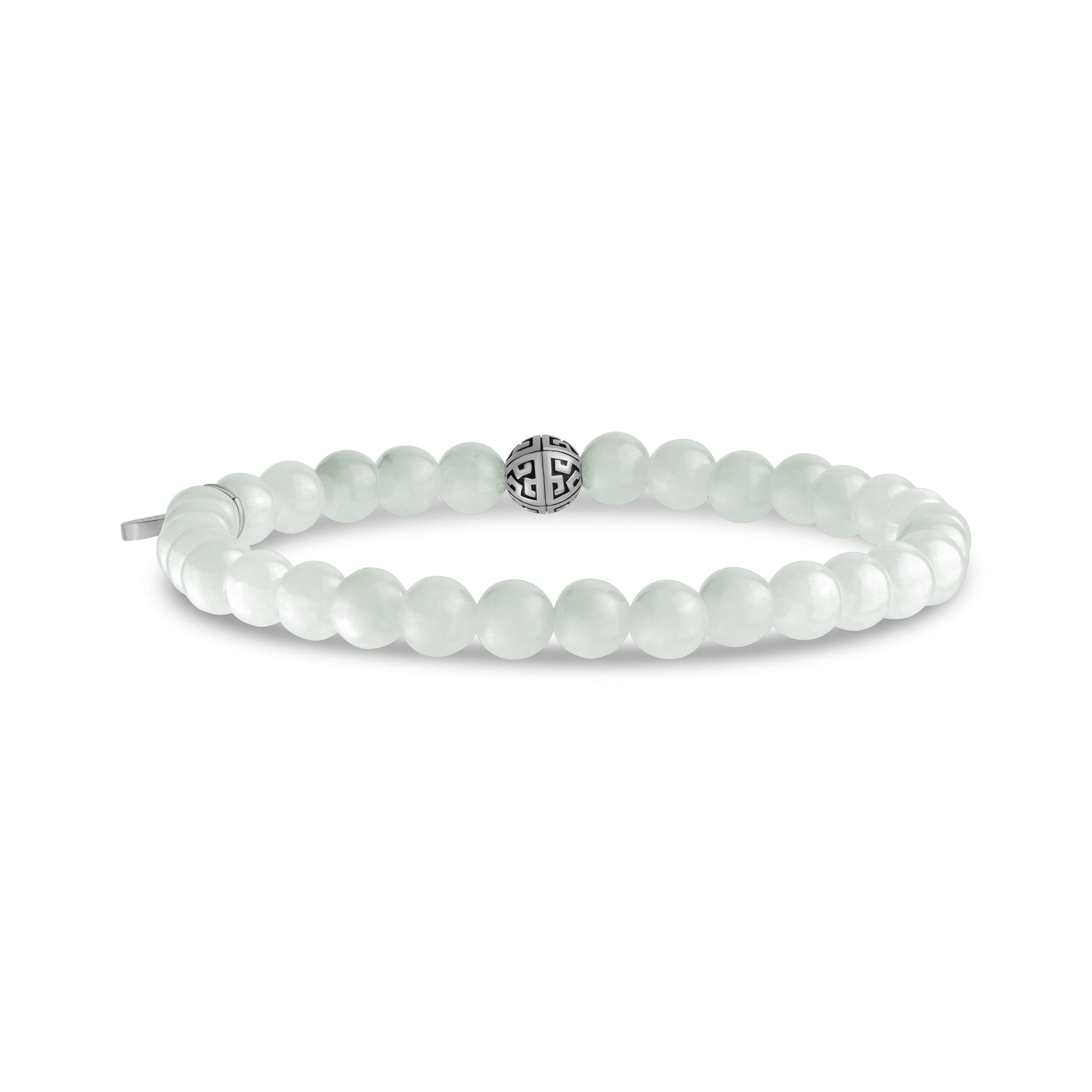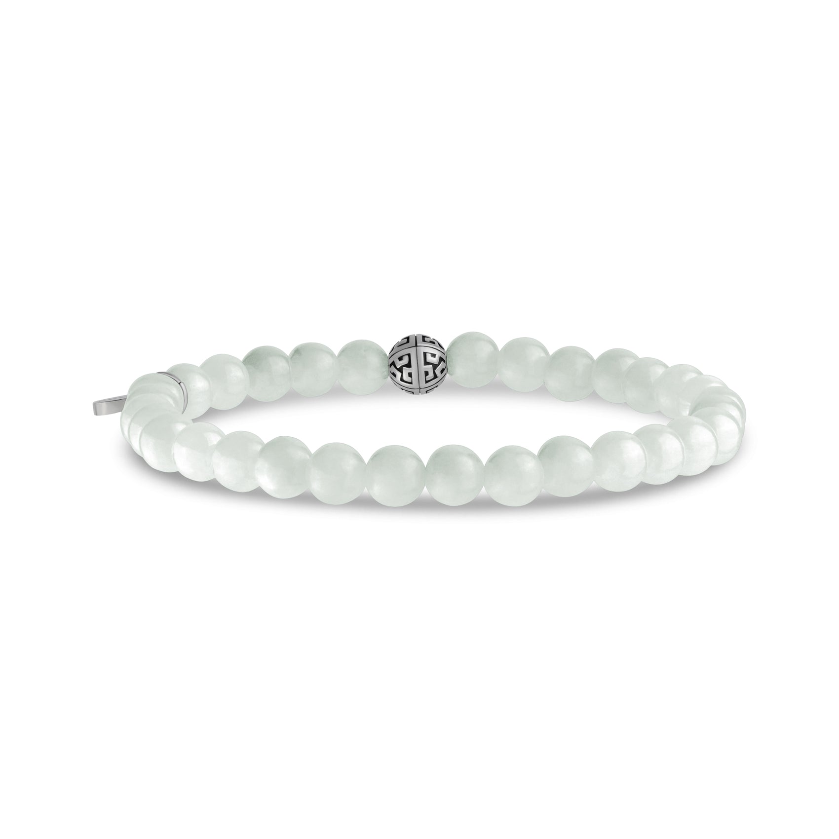 Dieses raffinierte Armband präsentiert 6 mm (0,24") natürliche Jadeperlen aus Burma, die für ihre Fähigkeit bekannt sind, Harmonie, Wohlstand und Schutzenergie zu fördern. Gepaart mit einer charakteristischen Edelstahlperle für einen modernen, polierten Touch, ist dieses Stück ebenso bedeutungsvoll wie stilvoll. Das elastische Band bietet eine bequeme Passform und ein vielseitiges Design, so dass es sich ideal mit anderen Armbändern kombinieren oder an eine besondere Person verschenken lässt. Ob für Sie selbst oder eine geliebte Person, dieses Armband vereint zeitlose Eleganz mit den bereichernden Vorzügen der Jade.