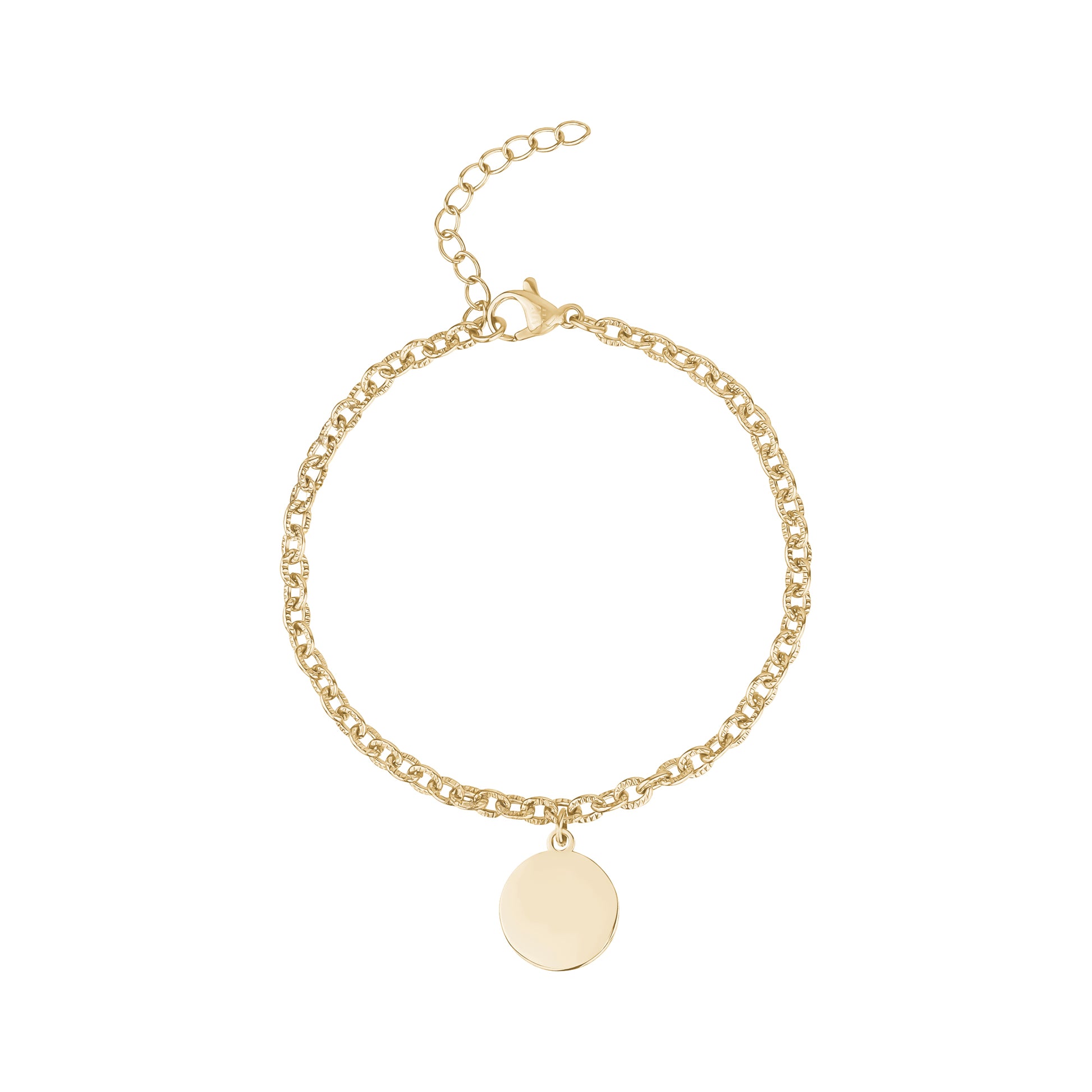 Das schlichte und zeitlose Minimal Round Charm Armband bringt mühelosen Stil in Ihren Alltagslook. Der runde, perfekt polierte Charm mit einer Breite von 12 mm (0,47") kann auf beiden Seiten graviert werden und verleiht ihm eine persönliche Note. Er ist mit einer 3 mm dicken, diamantgeschliffenen Ankerkette kombiniert, die genau die richtige Menge an Textur und Glanz hinzufügt. Das Armband wurde für Komfort und Vielseitigkeit entworfen und misst 6,5 Zoll mit einer Verlängerung von 1 Zoll, um eine flexible Passform zu gewährleisten. Ob im Lagenlook oder einzeln getragen, es ist ein moderner Klassiker, den Sie immer wieder tragen werden.