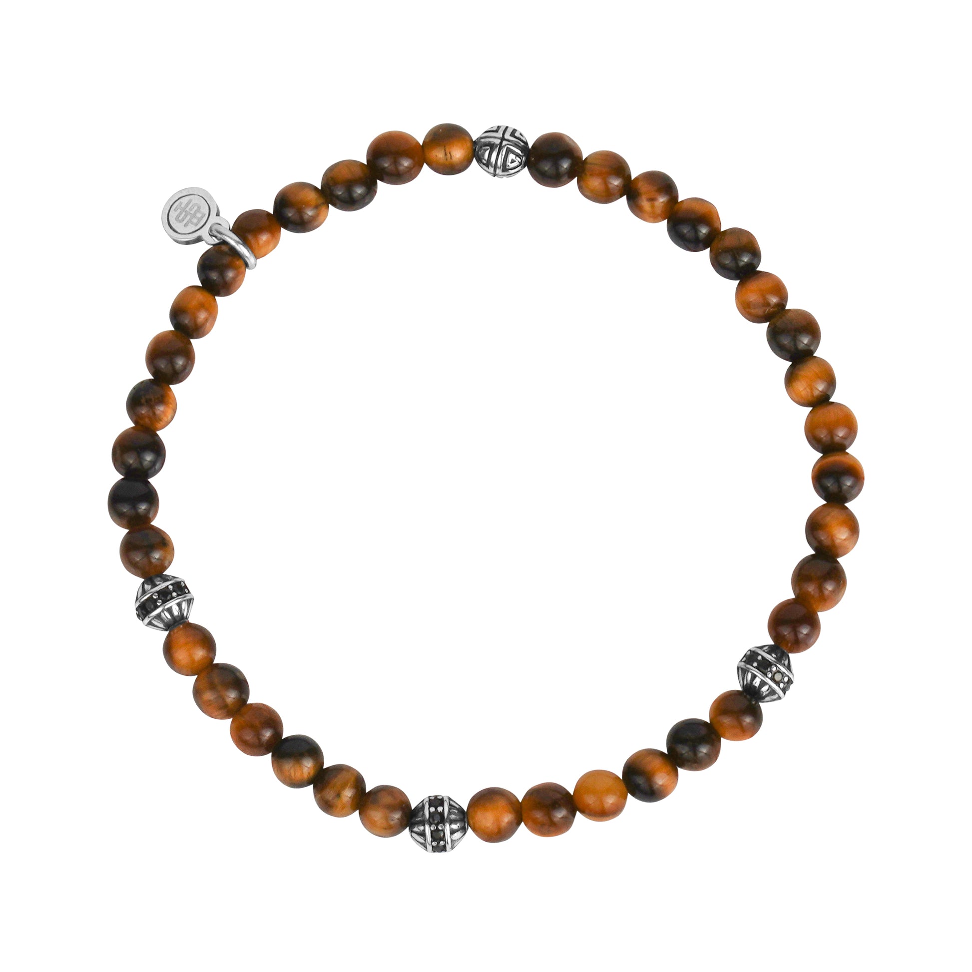 4 mm groĂźe braune Tigerauge-Perlen aus Halbedelsteinen werden mit einer charakteristischen Verschlussperle aus Edelstahl kombiniert, um ein stilvolles und haltbares Armband aus elastischer Kordel zu schaffen. Drei der mittleren Perlen sind mit schwarzen Zirkoniasteinen besetzt, die dem Armband ein subtiles Funkeln verleihen und es noch eleganter machen. Dieses dĂĽnne Armband eignet sich perfekt zum Kombinieren mit anderen Styles oder zum Verschenken an eine Freundin.